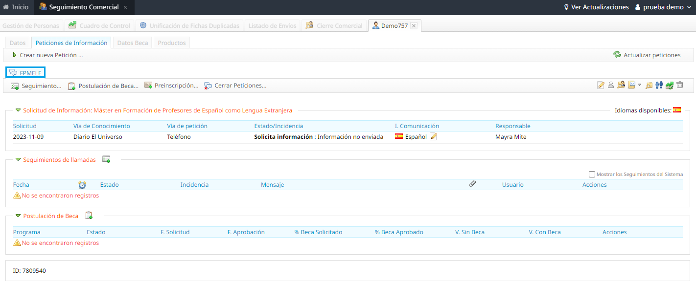 Petición de información. De forma inicial se recibe la solicitud de información por parte del postulante y se registra en uno de los dos programas (FPMELE o FPMTFL).