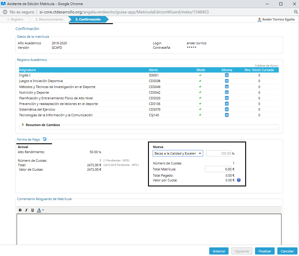 Asistente de matrícula – Edición.