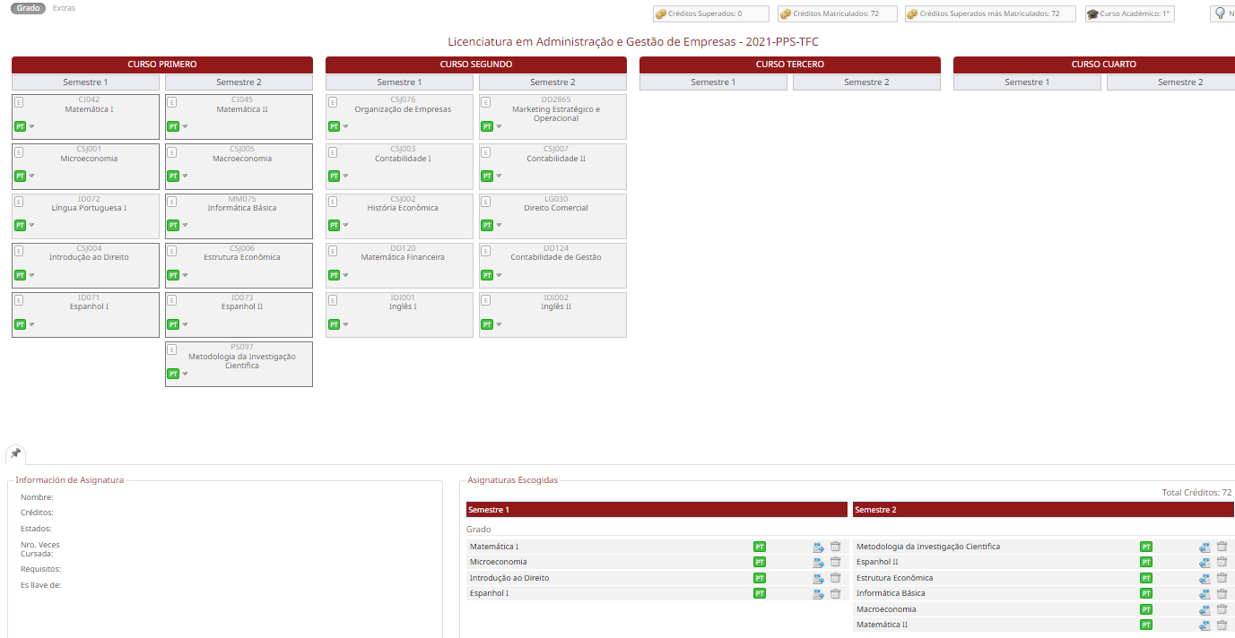 - El registro de asignatura de una matrícula de nuevo ingreso, será una matrícula estándar de diez asignaturas (60 créditos) de primer año.