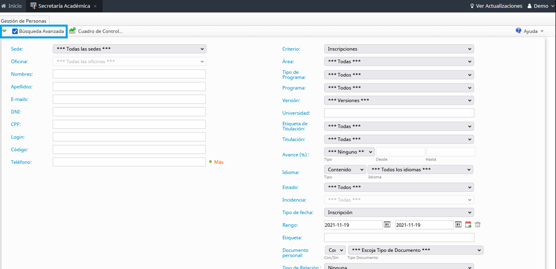 - Búsqueda Avanzada.