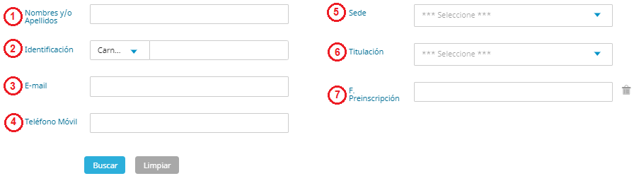 E-mail: permite consultar las preinscripciones con el email registrados a la persona.