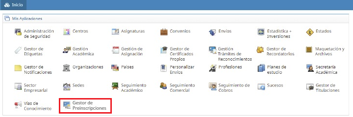Se permite gestionar el proceso de [Preinscripción] para todos los alumnos: