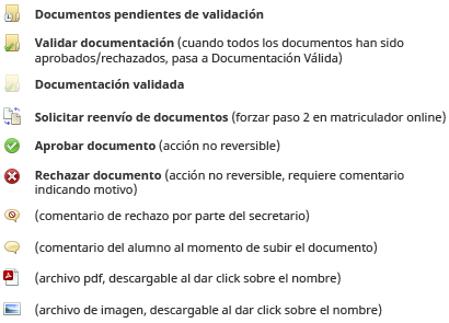 - Validar Documentación: Una vez que todos los documentos han sido aprobados/rechazados. El secretario académico utiliza esta opción para que pasen a la incidencia Documentación Válida.